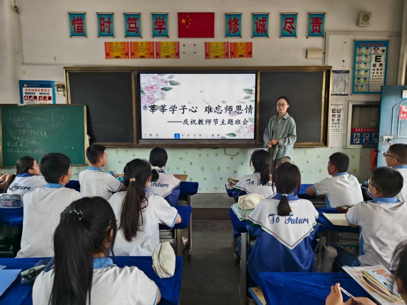 七、八年级以“莘莘学子心 难忘师恩情”主题开展班会课。