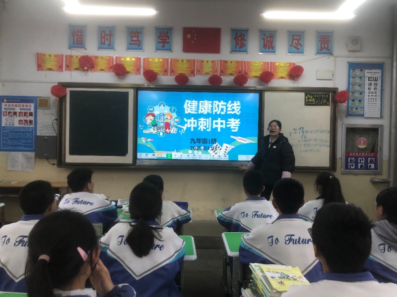 3.九年级以“健康防线 冲刺护航”为主题开展春季传染病防控班会,指导学生辨识流感、诺如病毒典型症状;掌握七步洗手法;设计个性化备考健康计划等内容。